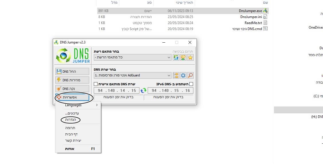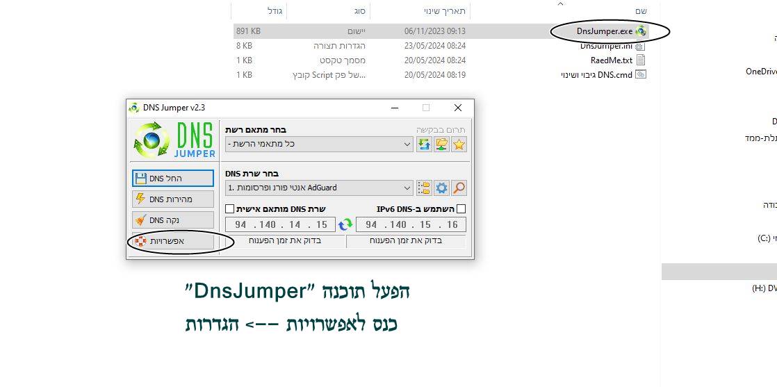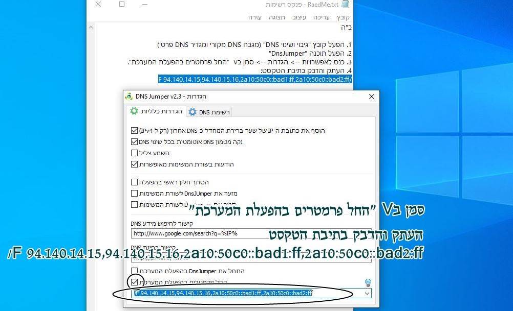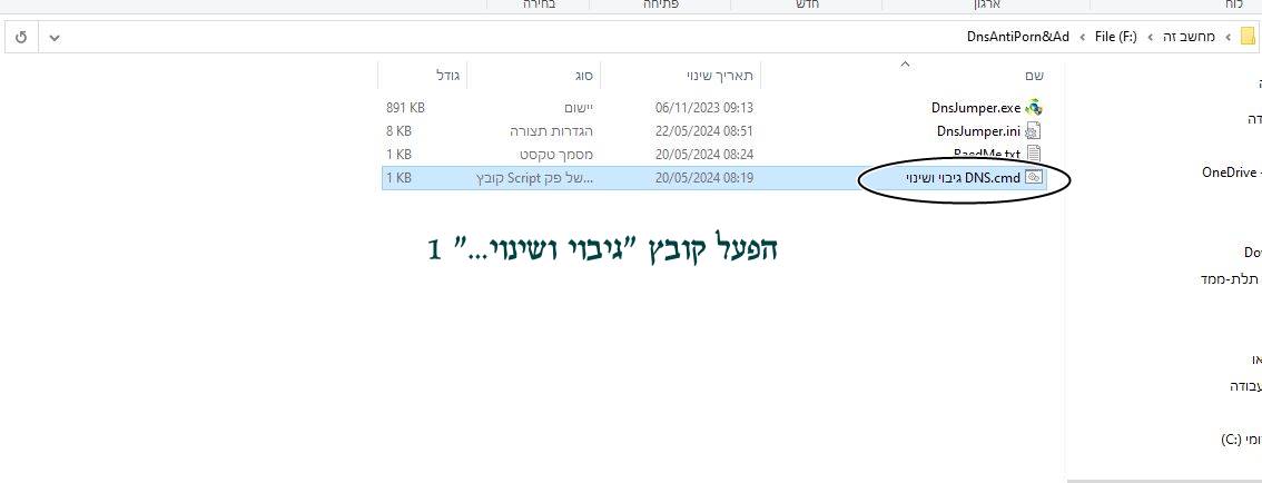 1. הפעל קובץ "גיבוי ושינוי DNS" (מגבה DNS מקורי ומגדיר DNS פרטי)